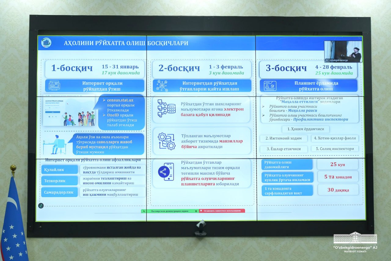 “Gidroproekt” AJ 2026-yil 15-yanvardan 28-fevralga qadar o‘tkazilishi rejalashtirilgan aholi va qishloq xo‘jaligini ro‘yxatga olish tadbiriga tayyorgarlik masalalariga bag‘ishlangan amaliy seminarida ishtirok etdi.